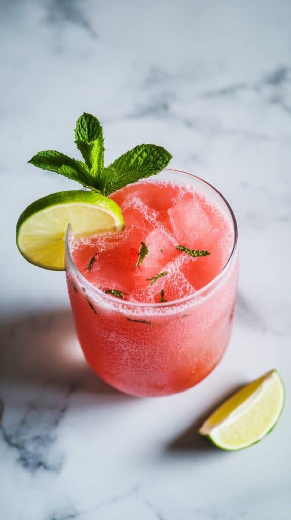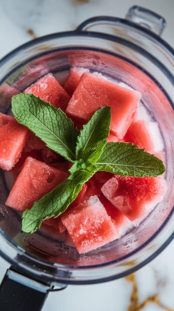 Watermelon is 92% water, which makes it perfect for slushies. Freezing it first gives you that thick, icy texture without adding extra water. Lime juice brings acidity and brightness, while mint adds a cooling compound called menthol—so every sip feels extra refreshing.
