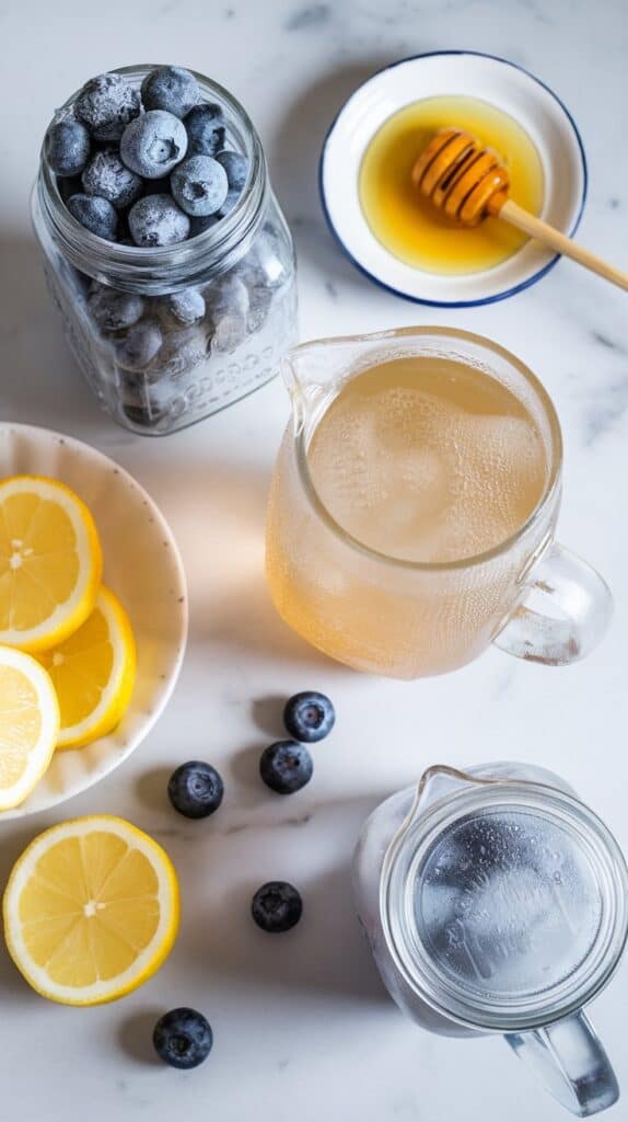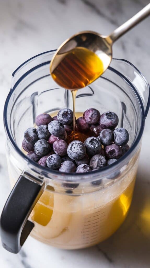 Frozen blueberries are packed with natural juice and fiber, so when you blend them with lemonade, you get that thick, slushie consistency—no ice needed! Lemonade brings the acid, which makes the blueberry flavor pop. Honey melts right in and helps balance the tartness for a bright, smooth finish.