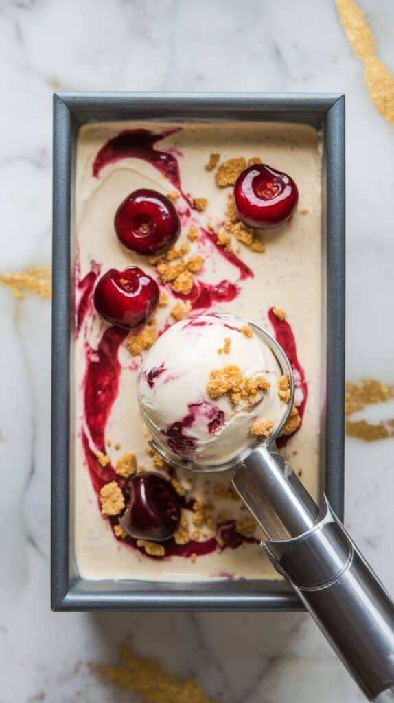 This Cherry Cheesecake Ice Cream is the best of both worlds — rich and creamy like a slice of cheesecake, but frozen and refreshing for warm days. And no machine means anyone can make it. Try it, swirl it, scoop it, and let me know what you think! 💬🍨