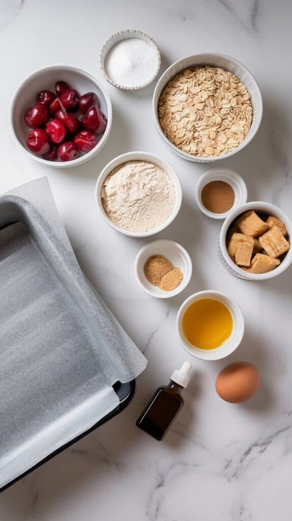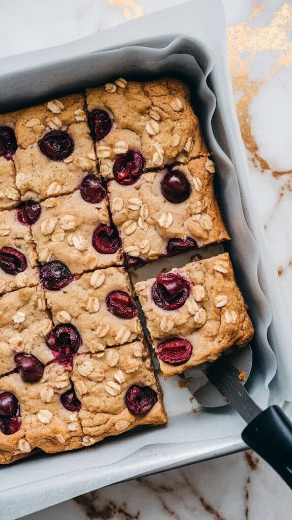 These bars came out of one of those “I want cookies but don’t want to scoop dough” days. I had some fresh cherries on the counter, mixed ’em in with oats and brown sugar, and baked everything as bars. Boom. New favorite.
