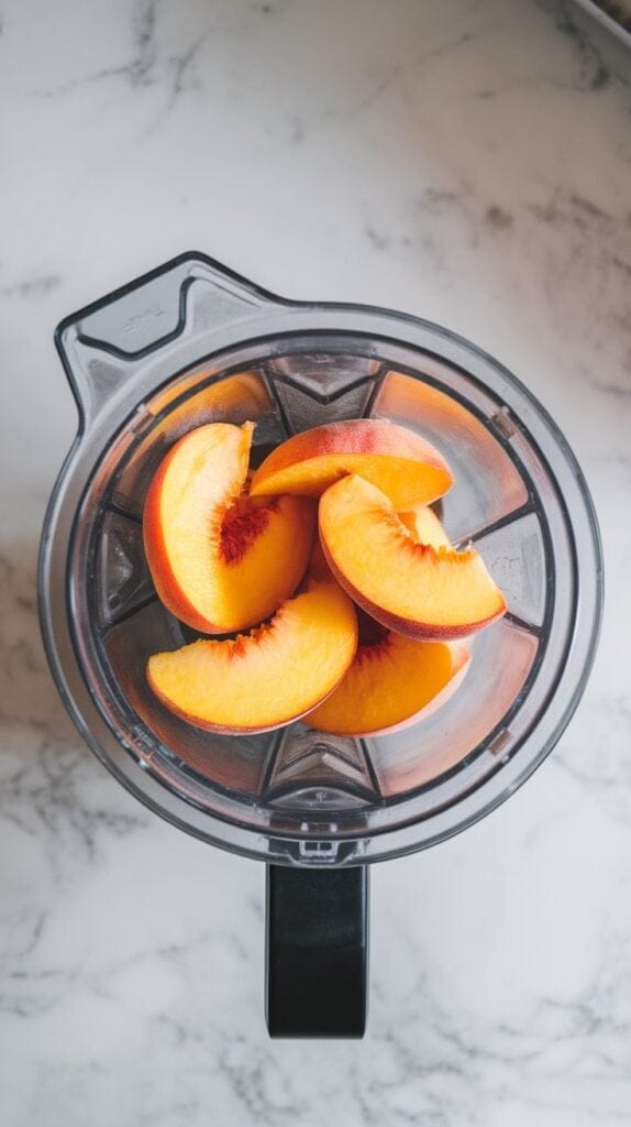 Step 1: Add 2 cups frozen peach slices to blender