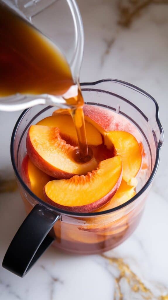 Freeze sliced peaches ahead of time for quick blending. You can also brew and chill your sweet tea in advance—just store both in the fridge or freezer and blend when ready.