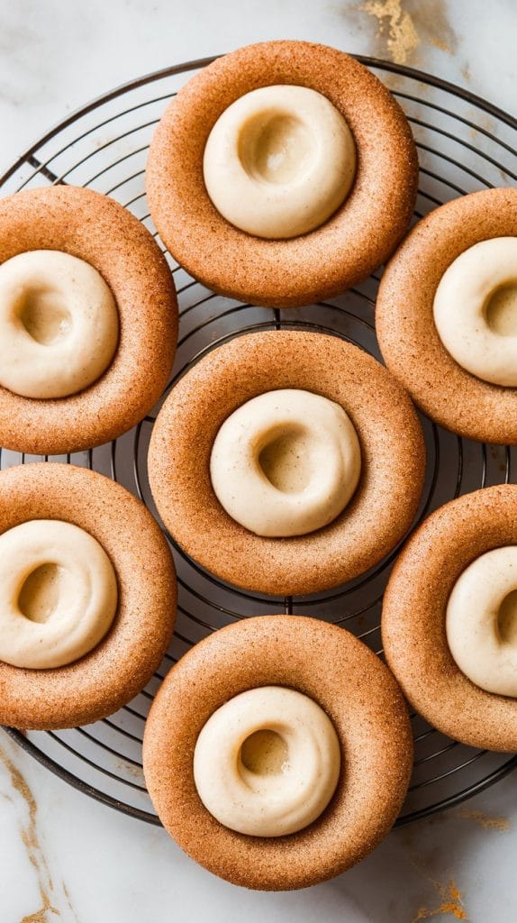 Cream of tartar is the secret behind that signature snickerdoodle tang and chewy texture. It keeps the sugar from crystallizing and gives the cookies a softer bite. Chilling the dough helps control spreading in the oven, keeping those thumbprint wells deep enough to hold the eggnog filling without leaking over the sides.