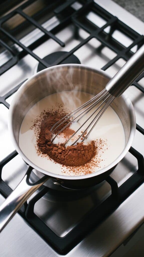 The fat from both the cream and chocolate binds with the spices to carry flavor better and give that creamy mouthfeel. Heating milk slowly prevents curdling and helps all ingredients dissolve evenly, giving you that rich, silky finish without any gritty bits.