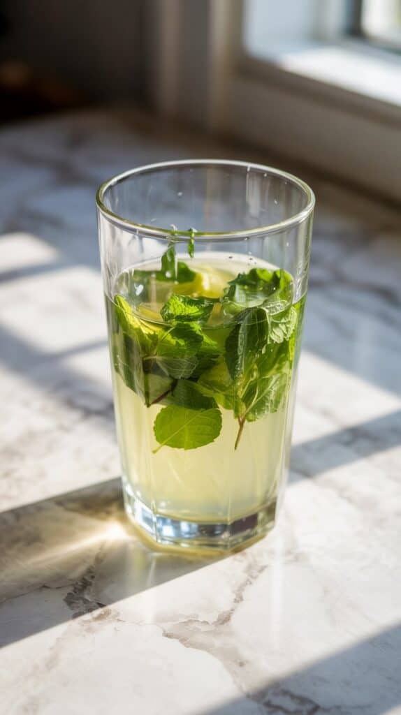 Use a muddler (or the back of a spoon) to press the mint gently—just enough to release the oils. Don’t shred it up.