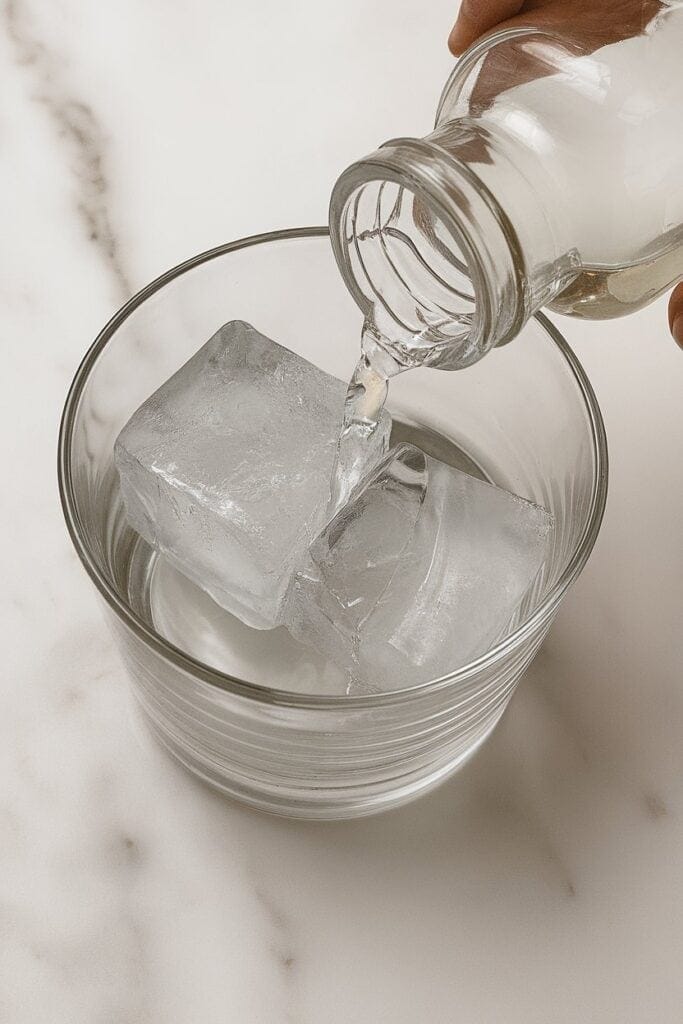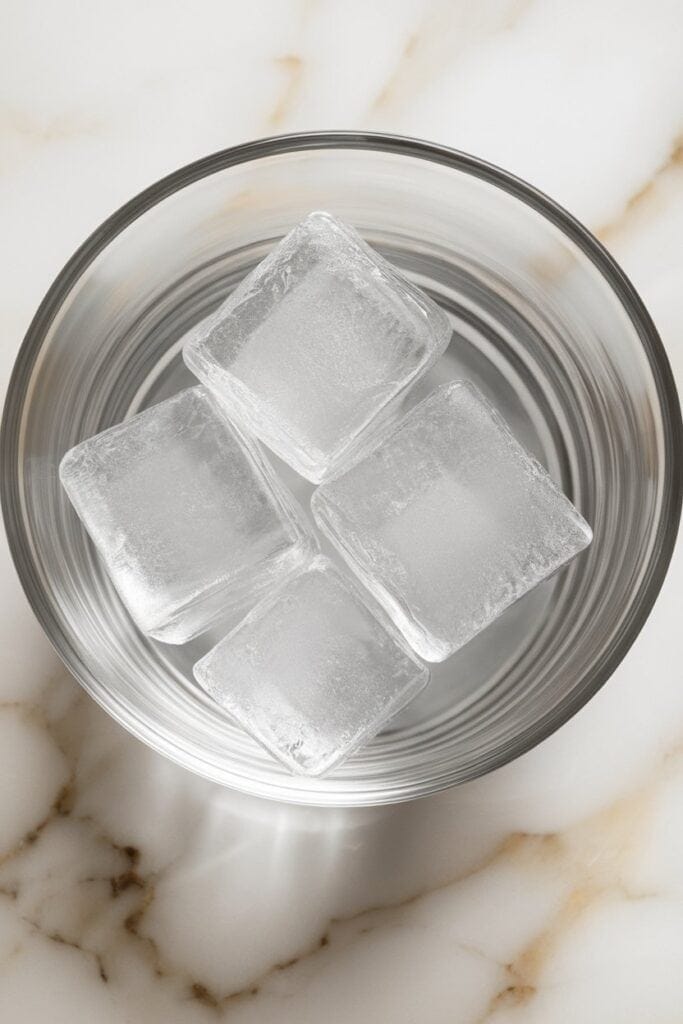Place a handful of ice cubes into a lowball glass. This chills the drink and keeps it refreshing.