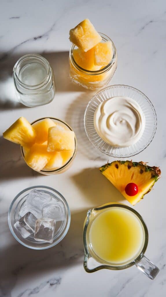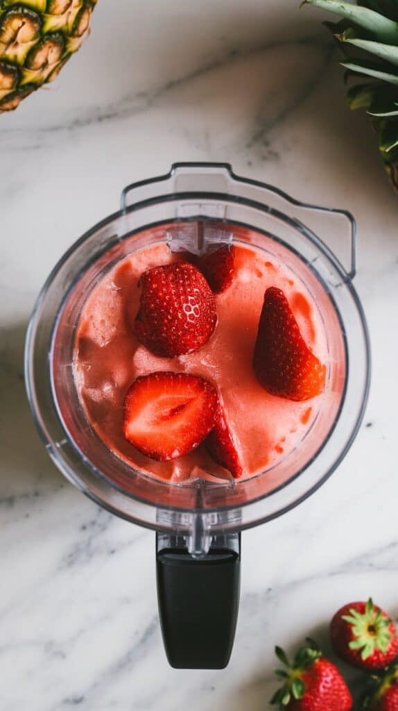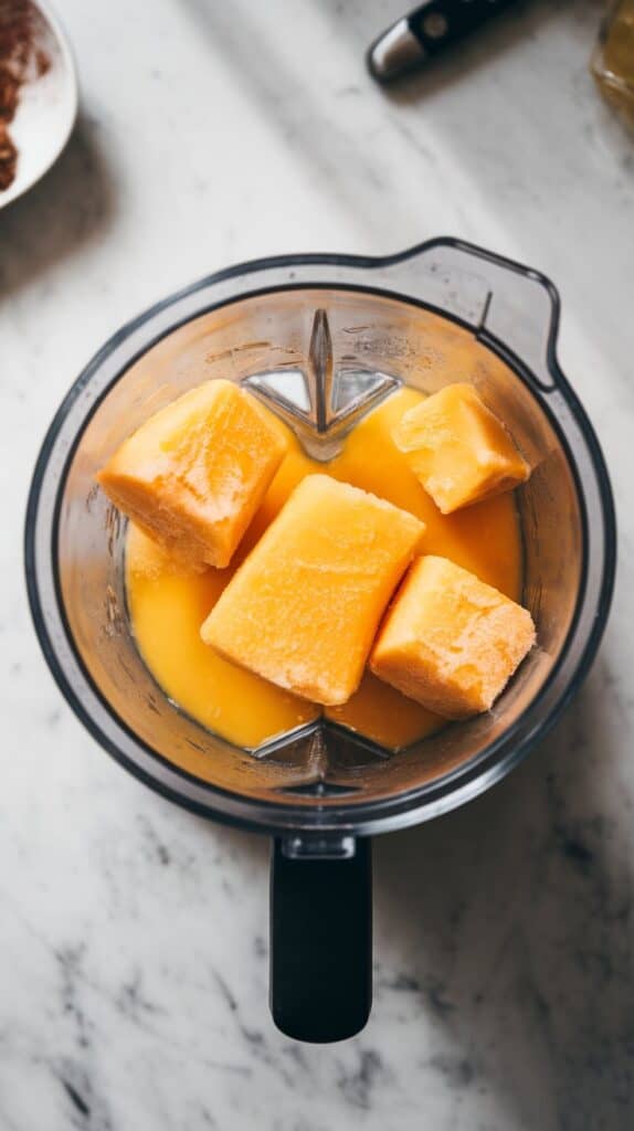 - Skipping the pineapple juice – You need a bit of liquid to blend the fruit smoothly