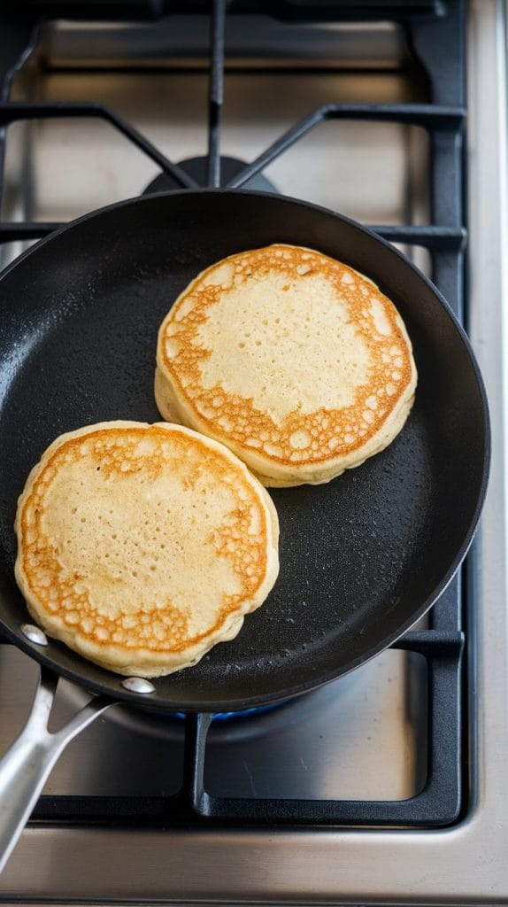 Heat a non-stick skillet over medium heat. Add a little butter. Pour about ¼ cup of batter into the skillet and spread it into a round shape. Cook 2–3 minutes until bubbles form and edges look set, then flip and cook another 2 minutes.