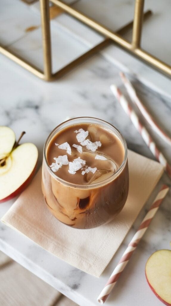 This drink tastes like fall but works year-round. It’s cold, crisp, and just the right mix of sweet, salty, and smooth. If you like apple cider and coffee, this one’s going to surprise you in the best way.