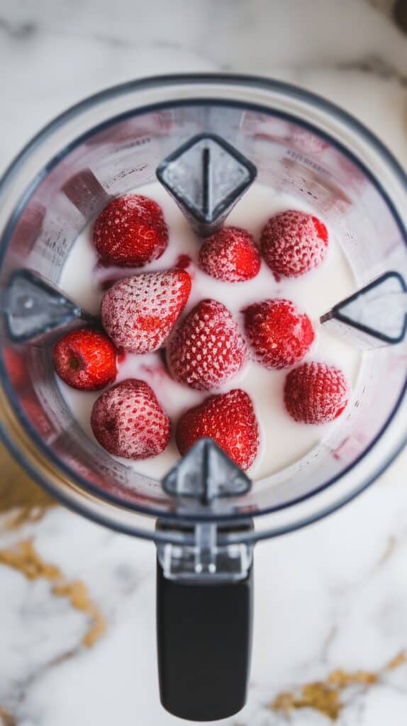 What to do: Blend everything for 20–30 seconds until it’s smooth but icy. It should look like a thick smoothie, not a thin shake.