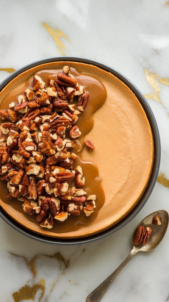 It’s creamy, rich, cozy, and has this beautiful combo of warm spice and buttery pecan crunch on top.