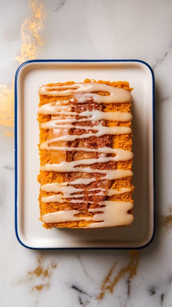Sweet potatoes naturally hold moisture, so they keep the cake tender without needing tons of oil or butter. The swirl of cinnamon sugar stays distinct because the batter is thick — it doesn’t all sink or blend in. The honey in the glaze caramelizes slightly as it bakes into the top, giving you that shiny, sticky-bun-style finish.